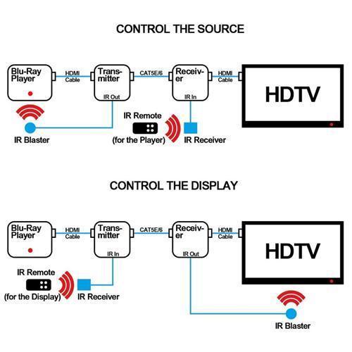 . Allows HDMI Audio/Video and IR signals to be transmitted over a single Cat5e/6 cable