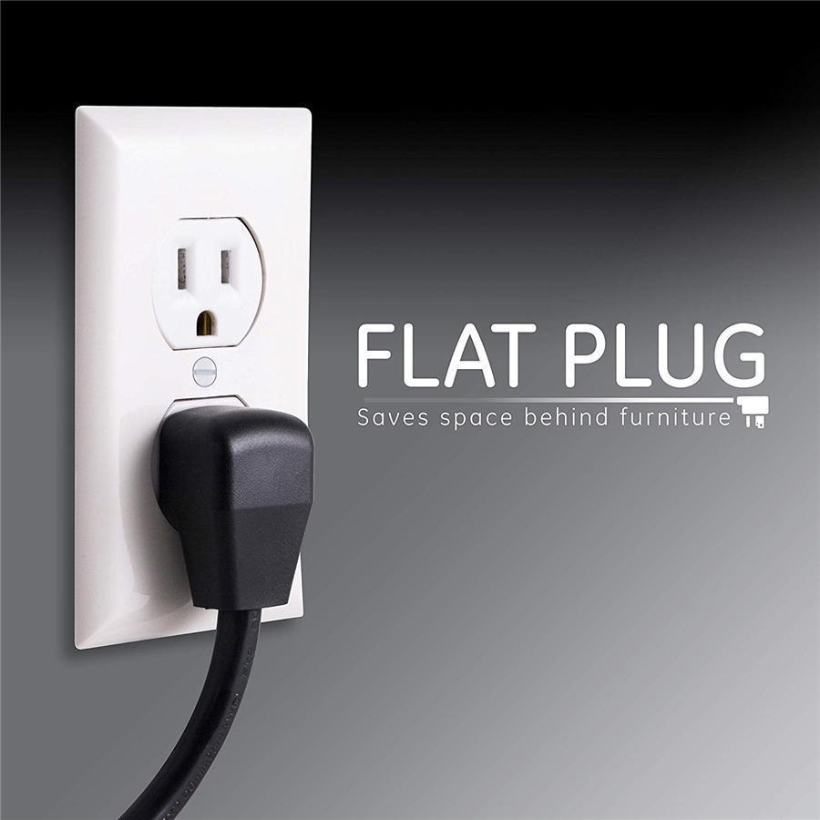This GE 8 outlet surge protector is designed with 4 ft. cord w a low profile plug. It features 4 adapter spaced outlets.