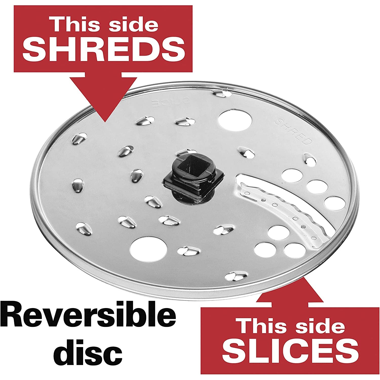 .Reversible shredding disc and S-blade for chopping, blending and pureeing