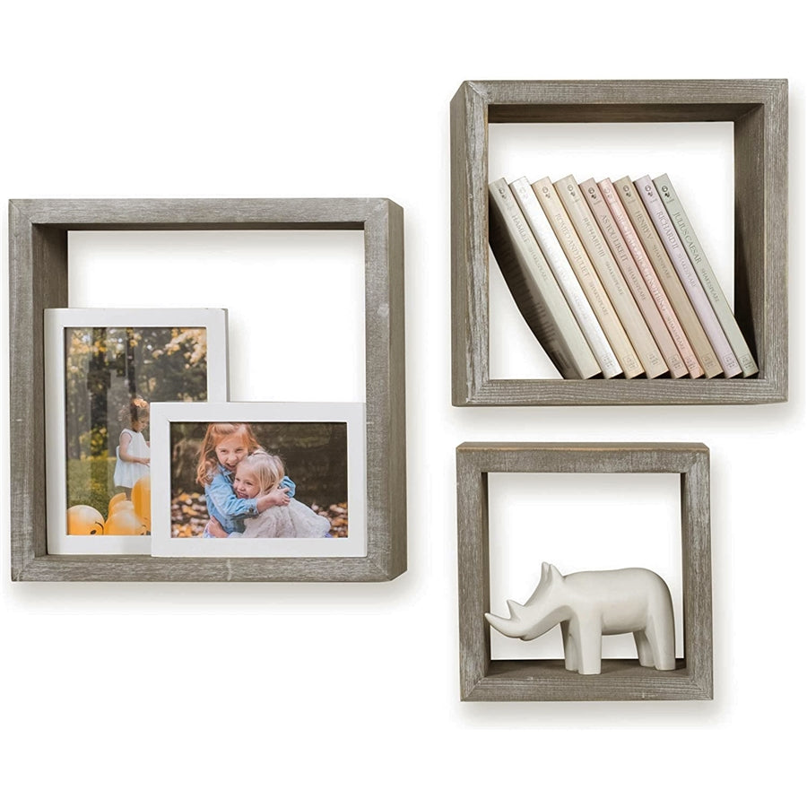 ITY International - Set of 3 Square Wooden Shelves, Taupe GreyItem: 64-015DG