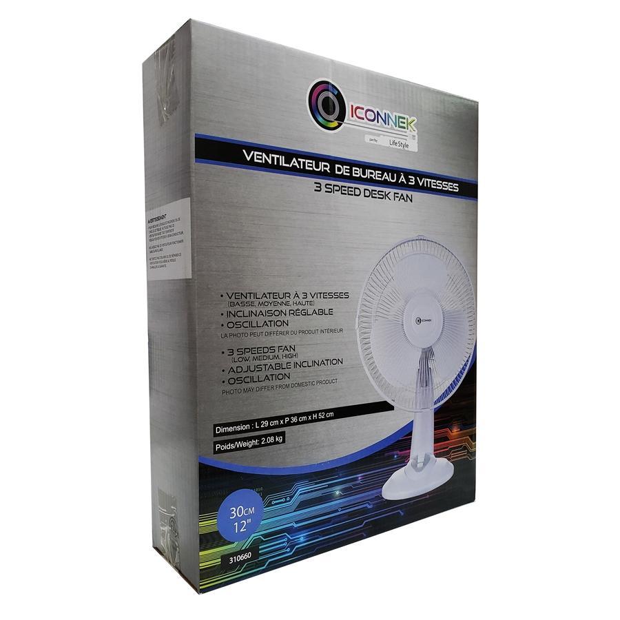 Iconnek - Desk Fan with 3 Speeds, Oscillation and Adjustable Tilt, 12 '', WhiteItem: 65-310660