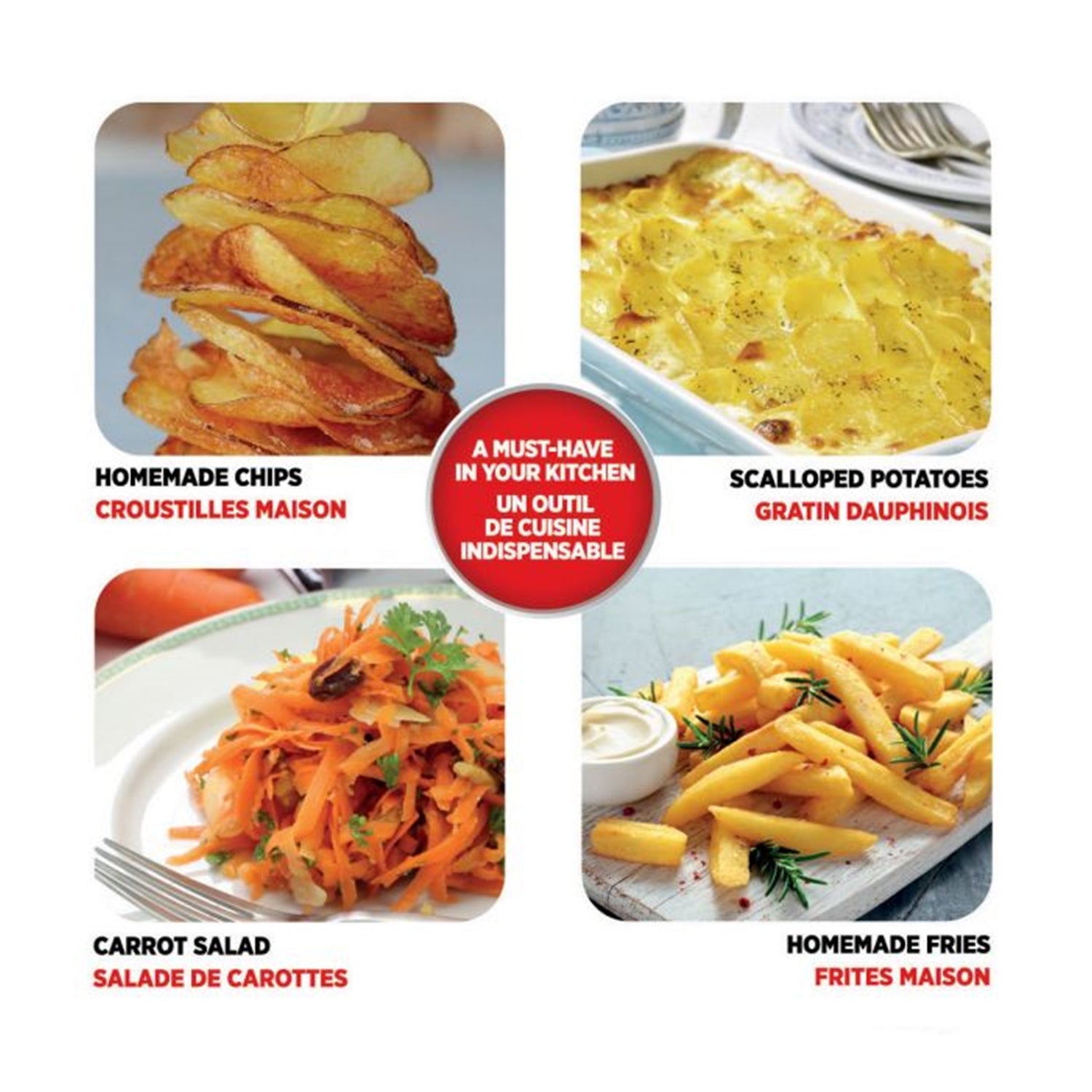 .Allows you to obtain different sizes of juliennes and diced cuts