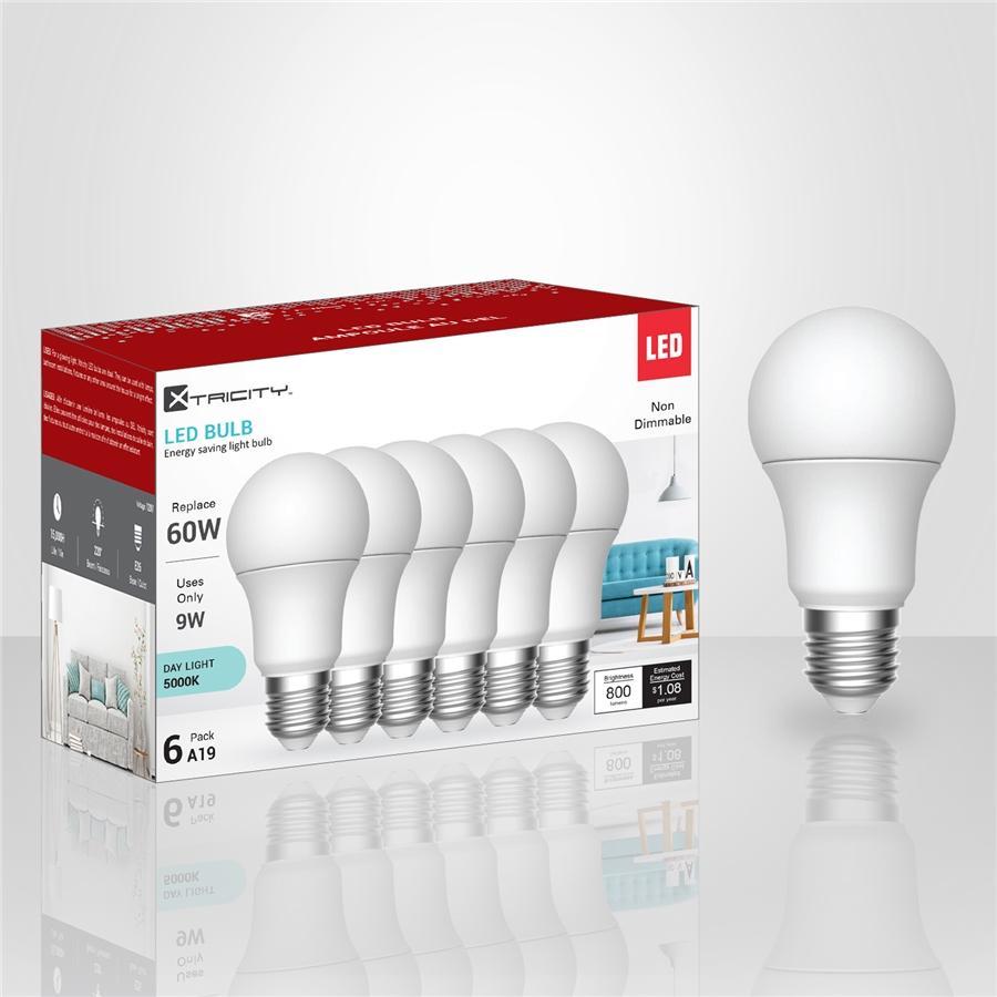 Xtricity - 6-Pack Energy Saving LED Bulbs, 9W, E26 Base, 5000K Daylight