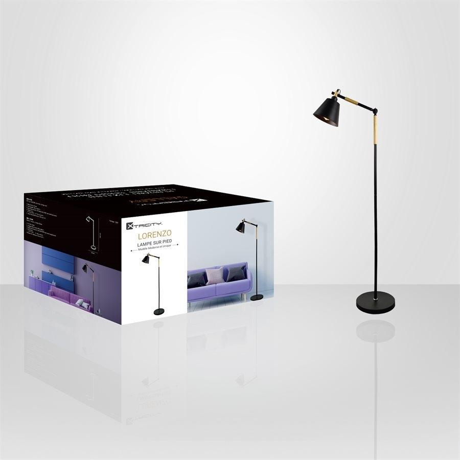 Xtricity - Wood and Metal Floor Lamp, 5' Height, From the Lorenzo Collection, Black