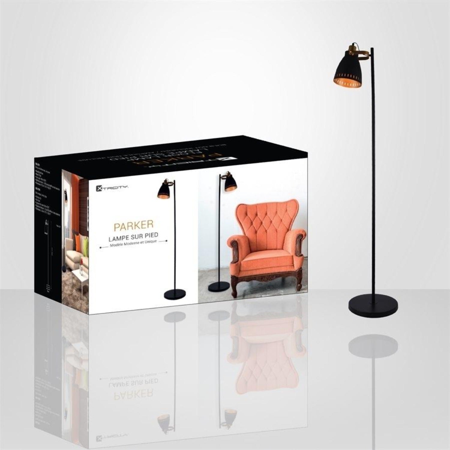 Enhance your space with the Xtricity 1-head floor lamp from the Parker collection. Its black and gold finish adds a touch of luxury to your decoration. This floor lamp requires 1 E26 bulb (sold separately) with a maximum power of 40W, creating elegant brightness. The 180cm cord provides installation flexibility, allowing this floor-standing fixture to become a sophisticated focal point in any room.