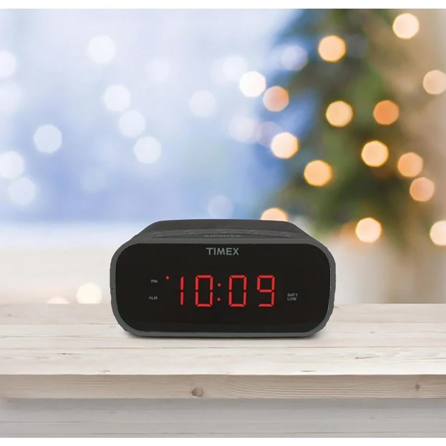 This Timex alarm clock has a sleek design that makes it look great on any nightstand. There's a 24-hour set-and-forget alarm with auto-snooze and auto-off.