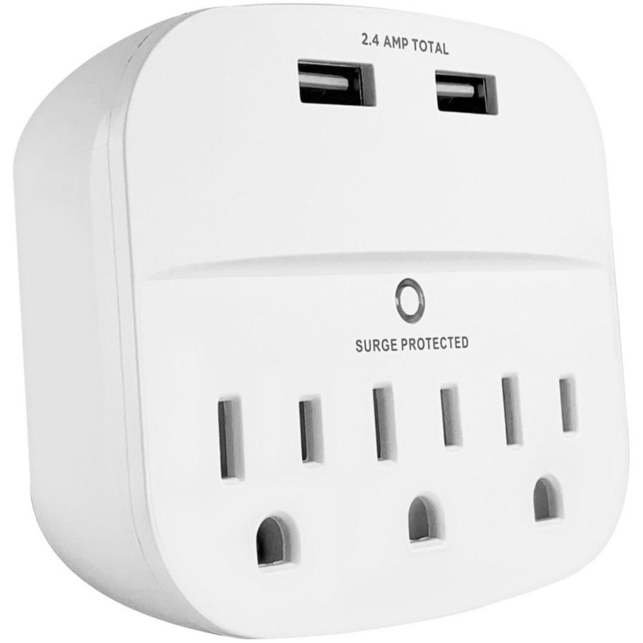 Amx 3-Outlet Wall Mounted With 2 USB Outlet (5V / 2.4A), 490J Surge Protection
