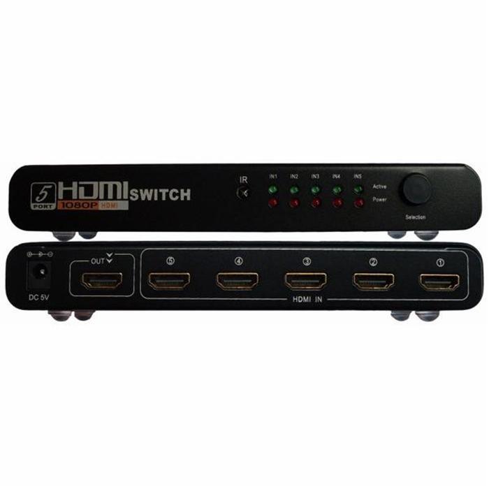 HDMI Switcher 5 Inputs/1 Outputs + Remote Control 1080p Black