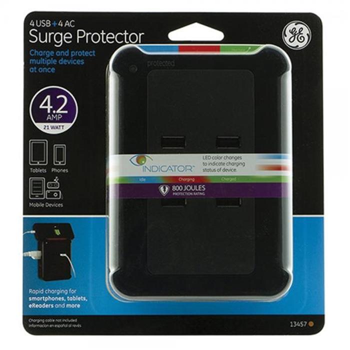 GE 13457 Wall Tap Surge Protector 4 Outlets, 4 USB Ports 800 Joules BlackItem: 98-P-GE13457