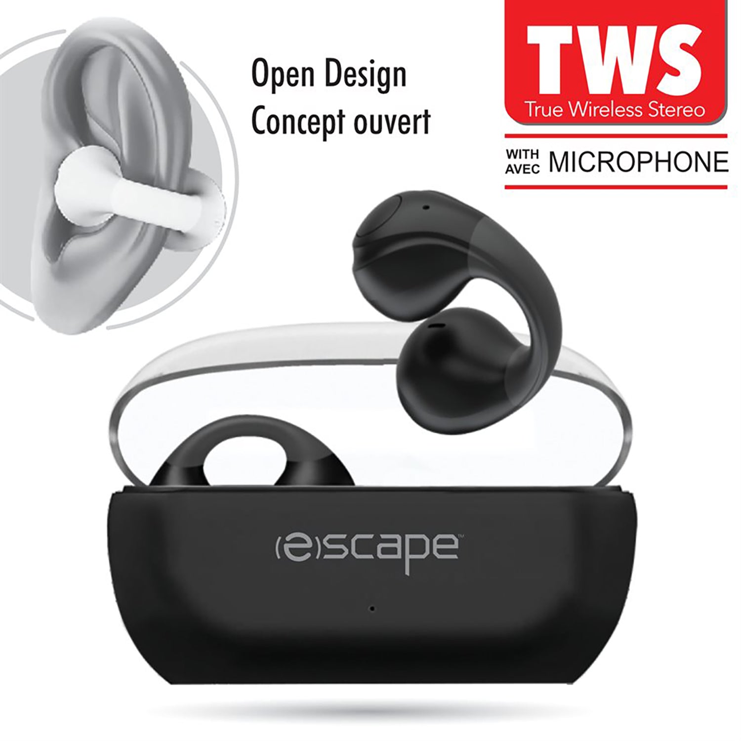 Escape Wireless Headphones offer ultimate freedom. Their ear clip design ensures a secure fit during travel or sports sessions. Enjoy stereo sound quality and stay connected with the built-in microphone. The charging case not only protects your earbuds but also charges them, ensuring extended battery life. Explore the perfect fusion of convenience and audio performance.