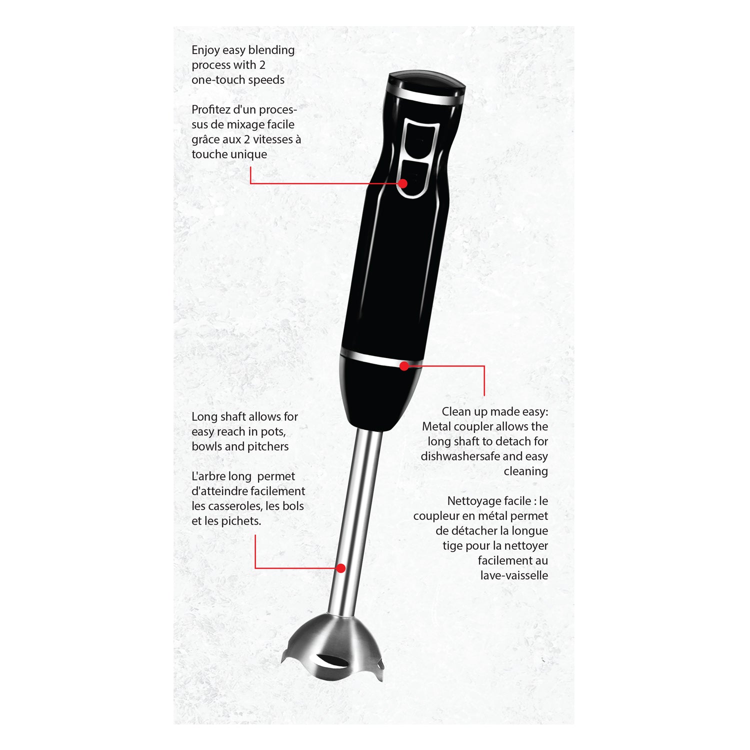JS Gourmet - 2 Speed Hand Blender, Stainless Steel Blade, 300 Watts, BlackItem: 76-7-99102