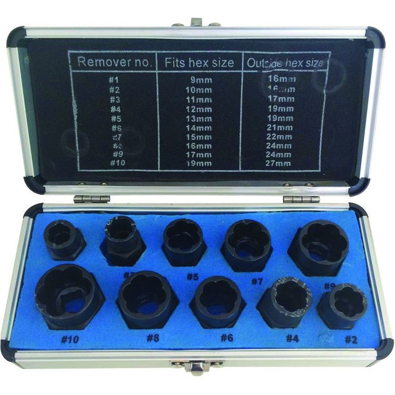- 10-piece set: Includes a variety of twist socket extractors for different sizes and types of fasteners.