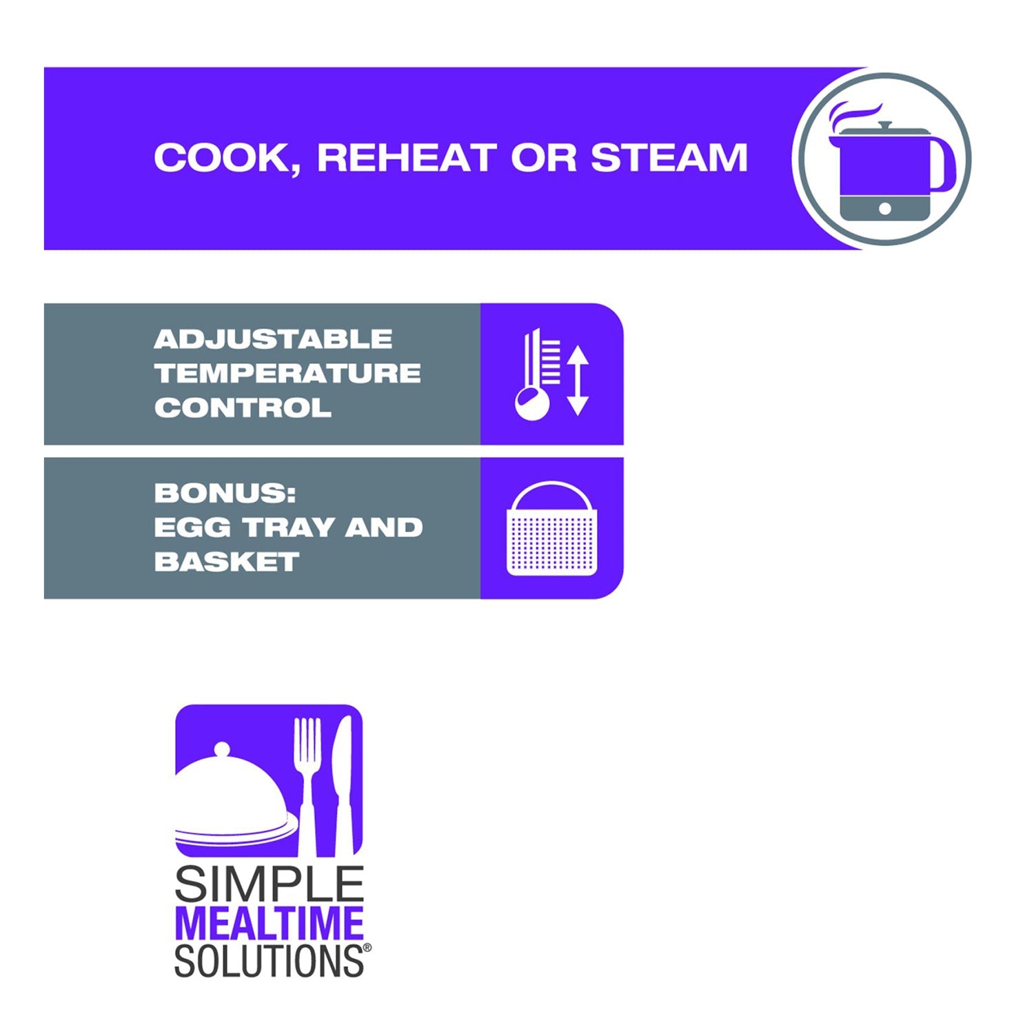• BONUS: Noodle basket and convenient steamer and egg tray included